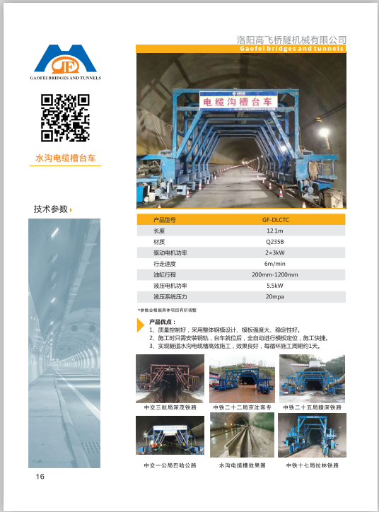 水溝電纜槽臺(tái)車一般有單溝槽、雙溝槽、三溝槽三種形式,長(zhǎng)度為12.1米,具有一體化液壓定位、液壓脫模、成型美觀等特點(diǎn)。